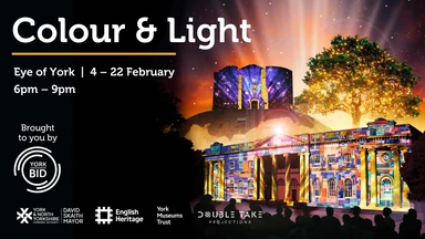 Colour & Light 26 is brought to you by York BID, in partnership with York Museum Trust, English Heritage, and Double Take Projections. It is made possible thanks to funding from the York and North Yorkshire Combined Authority.
