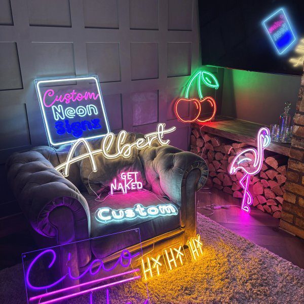 Handmade LED Neon signs in durable acrylic with energy efficient LEDs. Pre set designs and custom orders, multiple colours and sizes, hanging kit, remote and free nationwide delivery.