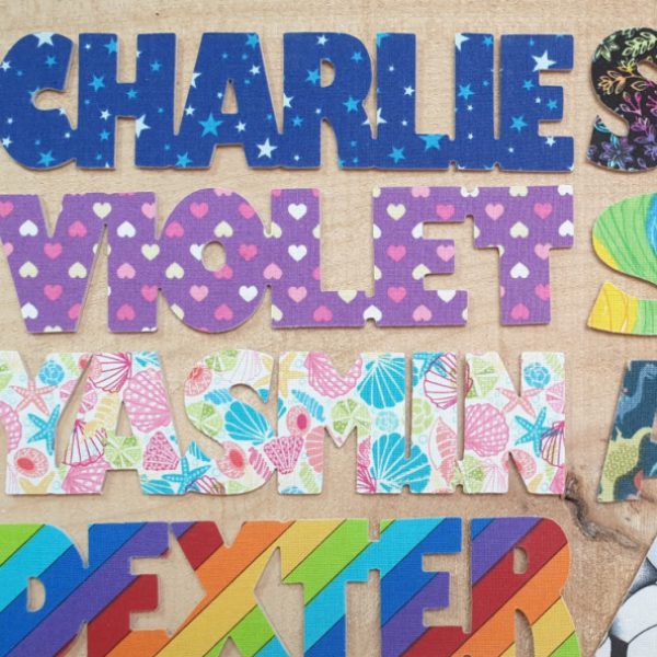 The unique Namemark - big enough for a door, thin enough for a bookmark. Handmade in Hull using FSC birch ply and vibrant fabrics. 1,500 names available.