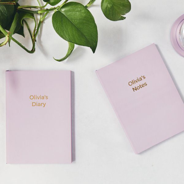 Personalised pastel desk accessories and stationery with FSC paper and vegan materials. On the spot customisation for notebooks, mugs, phone stands, pen pots, folios and gift sets.