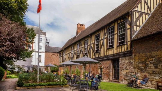 Open to all, come and meet friends, family and colleagues for delicious food and drink in the inspiring setting of our medieval guildhall, or relax outside in our beautiful walled garden in fine weather.