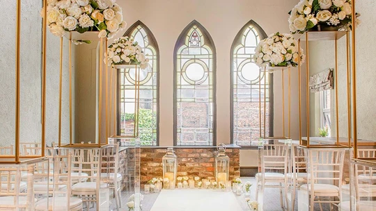 Our Organ Factory is situated on the first floor, where you are welcomed with beautiful Victorian style stained glass windows with the perfect backdrop for your Ceremony.