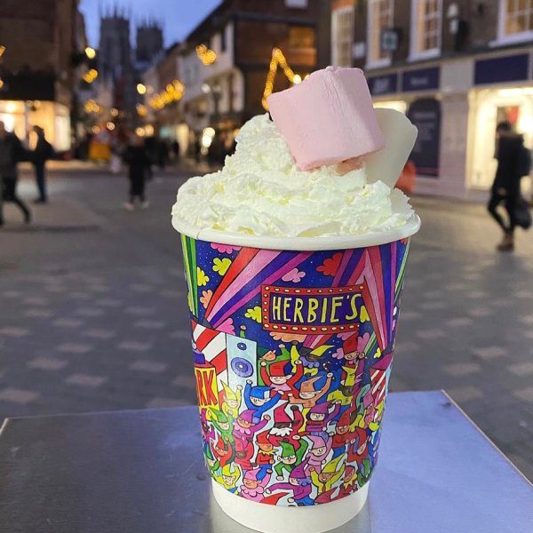 Opposite Betty’s, their restored 1970s VW campervan serves German Gluhwein and hot chocolate & Baileys. Premium products in one-of-a-kind York Christmas cups.