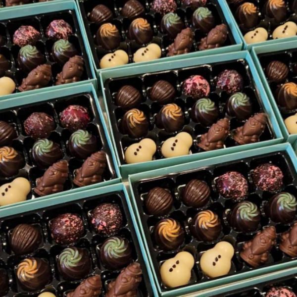 Handmade Belgian chocolate treats from York: advent calendars, hot chocolate bombs, bars, gift boxes and Christmas cakes - including free from and vegan options from locally crafted patisserie.